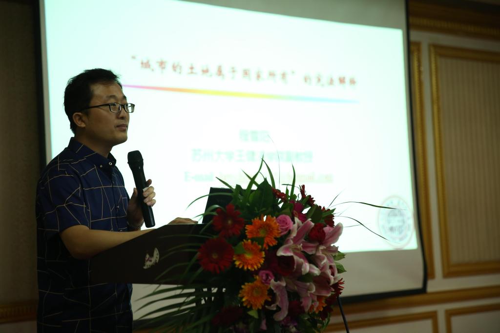 苏州大学法公司程雪阳副教授介绍了解释《宪法》第十条上的思考与建议。程教授认为,土地改革的核心是法律上的障碍,而法律上的核心问题是怎么理解和处理《宪法》第十条第一款“城市的土地属于国家所有”。